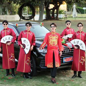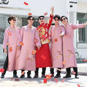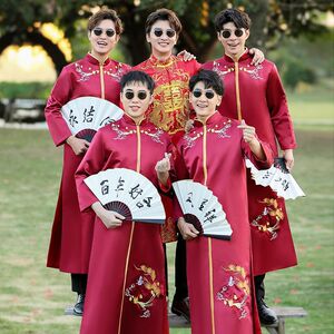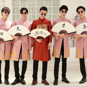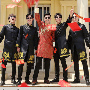 中式伴郎服装兄弟团抢亲搞笑古装大码胖男相声服大褂长衫袍结婚