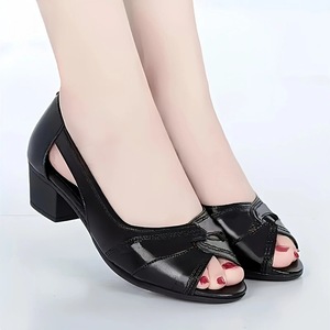 跨境2025鱼嘴妈妈凉鞋女夏季新款粗跟百搭女士凉鞋中跟软底中年