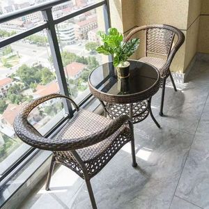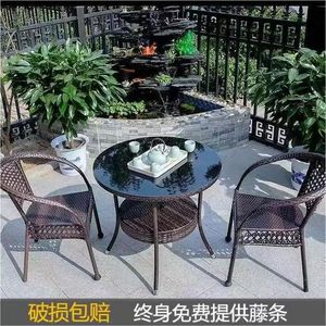 籐テーブルと椅子の3点セット、バルコニーティーテーブルと椅子、カジュアルな屋外中庭、高齢者用背もたれ籐椅子、コーヒーテーブルの組み合わせ