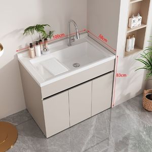 Kxh オールアルミニウムハニカムアルミニウムランドリーキャビネットバルコニーランドリーポイントと洗濯板一体型人造石シンク洗面台バスルームキャビネット