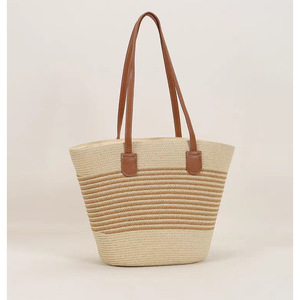 わらバッグビーチブラックストライプ 2025 新しいカジュアル夏ショルダーバッグファッショントート多用途バッグ女性のバックパック