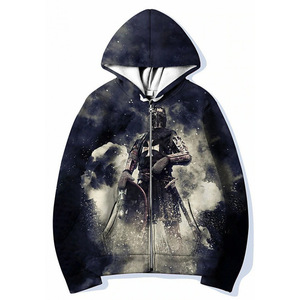 2025 クロスボーダー秋ジッパーフード付きスウェットシャツ 3D デジタル印刷メンズトレンディなルーズカジュアルスウェットシャツ