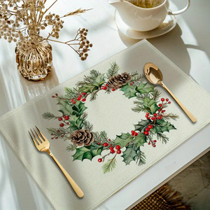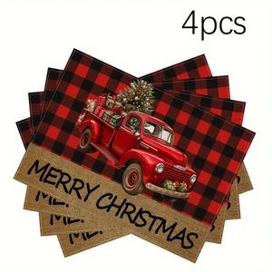temu クロスボーダー クリスマス 新しいリネン プレースマット ホリデー パーティー パーティー デコレーション カップ 防汚断熱テーブルマット