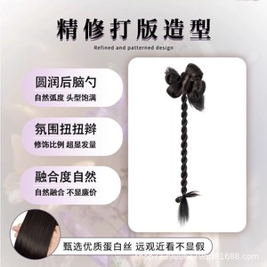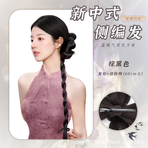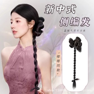 女性用ウィッグ三つ編み、新しい中国風サイド編み込みヘア、花のつぼみ、ヌイヌイ三つ編み、人工毛、クールな中国風チャイナドレスウィッグ、ポニーテール