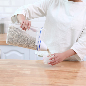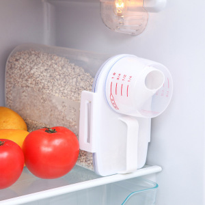 和風ポータブルプラスチック米バケツ家庭用計量カップ付き多機能米保存バケツ穀物保存麺バケツキッチン密封缶