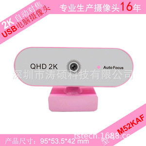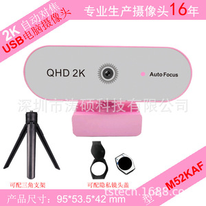 QHD2K オートフォーカス コンピュータ カメラ ピンク マイク付き ブラケット レンズ プライバシー カバーを装備可能