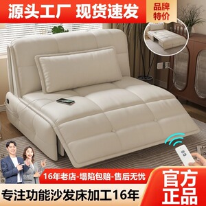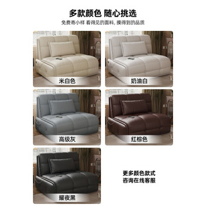 多機能スマートリモコン付き本革電動ソファベッド、小規模リビングや書斎に最適、伸縮式ソファベッド、折りたたみ式