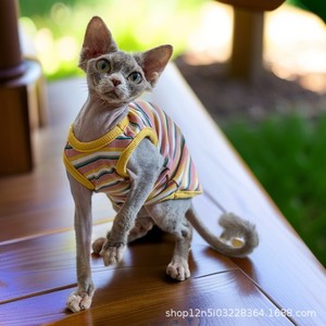 ドイツ猫服、無毛猫服、ストライプベスト、薄底シャツ、快適な抜け毛防止スフィンクス高弾性