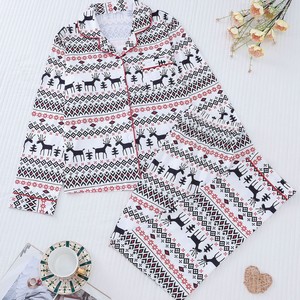 国境を越えた貿易卸売レディースパジャマ四季クリスマスプリントラペル長袖ズボンヨーロッパとアメリカのカーディガンパジャマ
