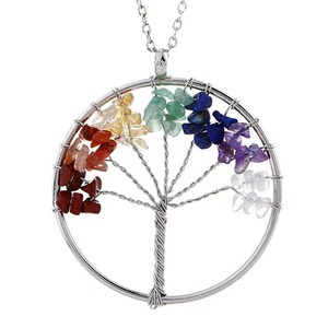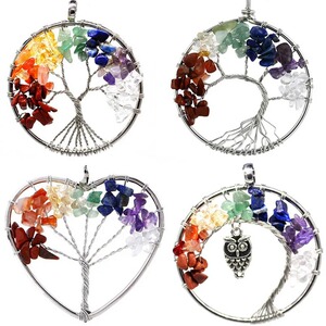 7 色天然石ジュエリークリスタル砂利金のなる木手巻きライフツリーペンダントネックレスジュエリー