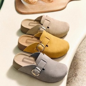牛革バージョン~ソフトソールボーケンシューズ2025春秋新作厚底スリッパレディースアウターボーケンハーフスリッパつま先スリッパ