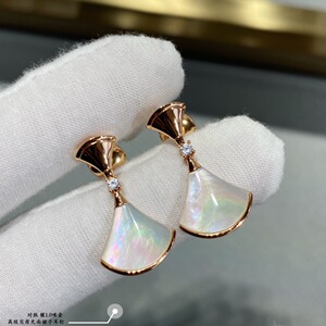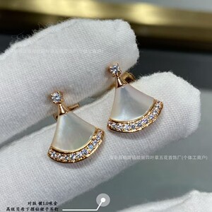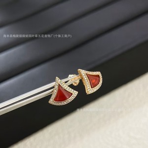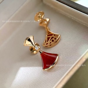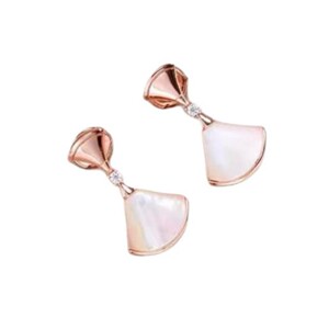 V ゴールド スカート シェイプ イヤリング レディース 18K ローズゴールドメッキ ダイヤモンドとマザーオブパール カーネリアン シェイプ イヤリング