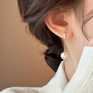 顔を引き立てる、軽い高級感と高級感、マイクロ象嵌ジルコン、水滴パールタッセルピアス、シンプルでエレガント、万能ピアス