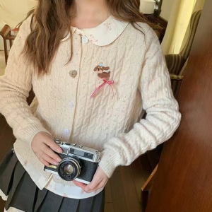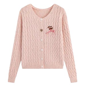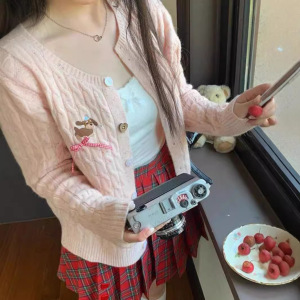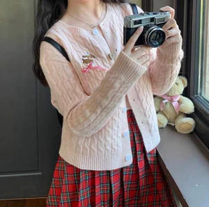 甜美少女可爱学院风薄款毛衣外套粉色麻花针织开衫女早春秋季上衣