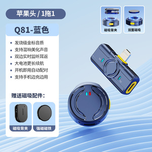 Q81 充電コンパートメント付き、Apple コネクタ、ブルー (丸型磁気ラベリアマイク 2 個 + 大容量充電コンパートメント + ノイズリダクション + リバーブ)