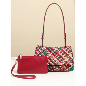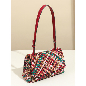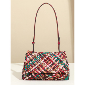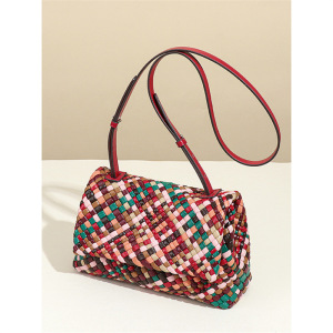 女性用本革レインボー織りバッグ、コントラストカラーの小さなスクエアバッグ、高級ショルダークロスボディバッグ、ファッショナブルでパーソナライズされたフリップアームバッグ