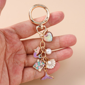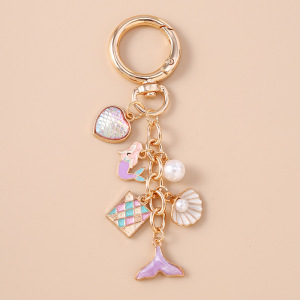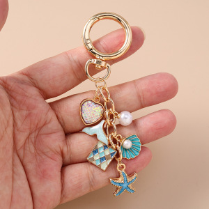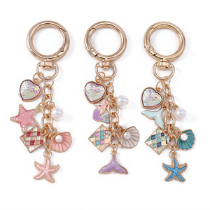 ヨーロッパとアメリカのクロスボーダージュエリー新しいファッションシェルフィッシュテールヒトデキーホルダーパールシェルラブキーホルダーペンダント