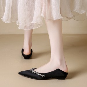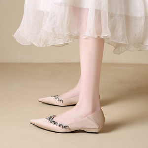 ヨーロッパステーションの軽くて大人なスタイル〜浅い口の女性用フレンチラインストーンポインテッドトゥフラットシューズ、目に見えない内側の高さを高めるボートシューズ、足を踏むことができます