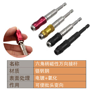 六角ハンドル磁気クイックリリースビット、マルチアングル延長ロッド、方向変更ジョイント、電気ドリル延長接続ロッド、ユニバーサルジョイント