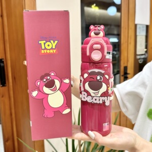 見栄えの良いダブルドリンク子供用魔法瓶カップ、ポータブル女の子用ストローカップ、学生漫画ステッチドリンクカップ