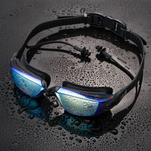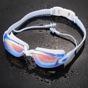 新款近视炫彩泳镜连体耳塞防水舒适小框高清泳镜防水防雾游泳镜