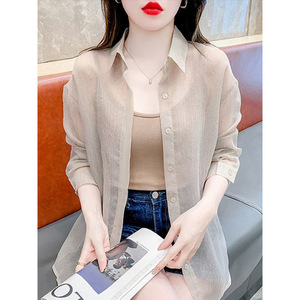冰丝晒衬衫女长袖雪纺衫夏季2025新款洋气百搭薄款开衫晒罩衫