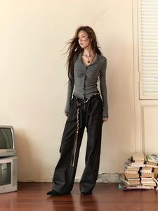 Fansiyu アメリカンワイドレッグオーバーオール女性のための 2025 新しい小さなストレートジーンズスリムカジュアルパンツ