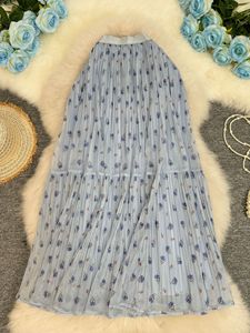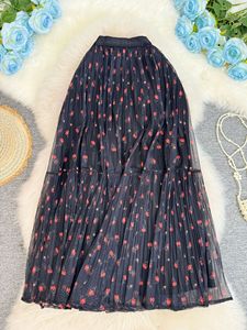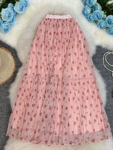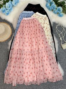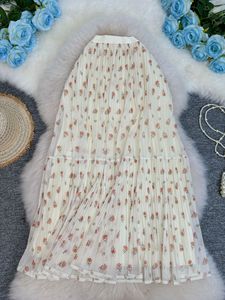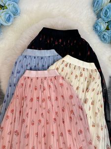 2025年春夏新作メッシュ花柄プリーツスカート小柄万能妖精Aラインスカートミドル丈スカート