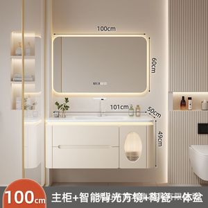 圆弧美妆镜柜+圆角陶瓷盆100cm