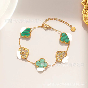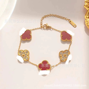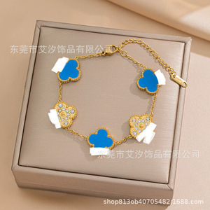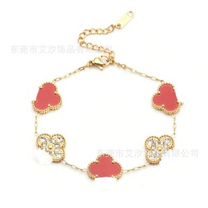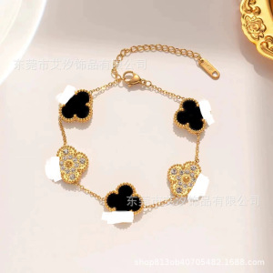 人気の15MM三花二ダイヤモンド四つ葉のクローバーブレスレットチタン鋼金メッキ18Kライト高級ハイエンドファッション多用途ブレスレット
