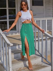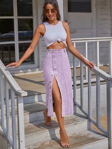 现货-30291#亚马逊跨境女装欧美INS不规则开叉牛仔高腰半身长裙