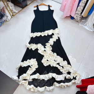 Thirteen Lines オーストラリアンニッチ包帯ベストサスペンダー U ネックフリルデザインロングドレス A3 # 8030
