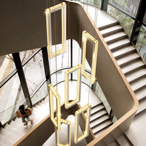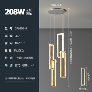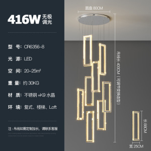 階段ライトロングシャンデリアヴィラデュプレックスライト高級回転階段ライトホテルプロジェクトリビングルームライトクリスタル大型シャンデリア