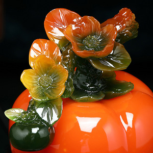 【SFエクスプレス送料無料・既製ギフトボックス】BJ Sサイズ すべてがうまくいく 柿と翡翠のペア 高さ約21cm