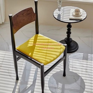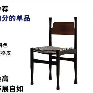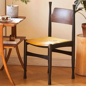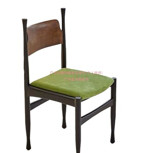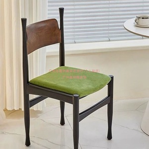中古餐椅家用设计师羊羔绒实木靠背休闲椅侘寂风复古简约餐厅椅子