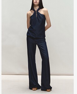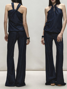 PRRPオリジナルテンセルデニムブルー中空ホルターネックニッチサスペンダーファッショナブルなマイクロフレアドレープパンツスーツ