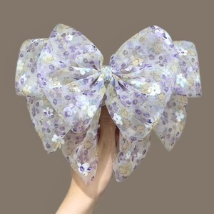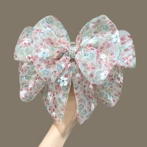 【花开花落】新款超仙田园风碎花大蝴蝶结飘带马尾夹时尚发饰发夹