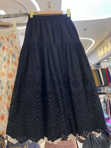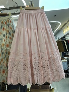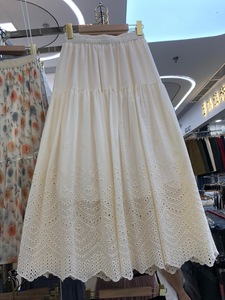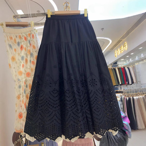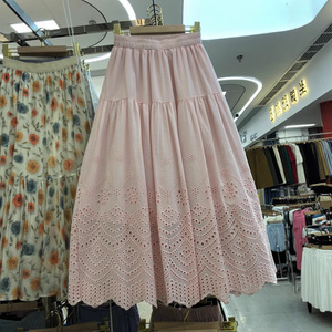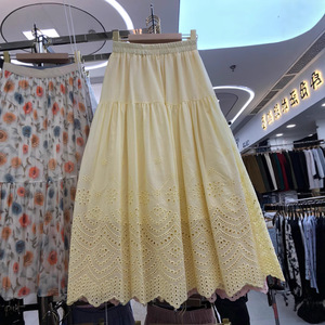 フレンチスイート年齢軽減中空レースフックスカート女性用2025夏新作伸縮性ミドル丈Aラインスカート