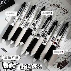 咔巴熊卡通静音按动笔软握中性笔速干中学生ST刷题考试专用黑色笔