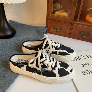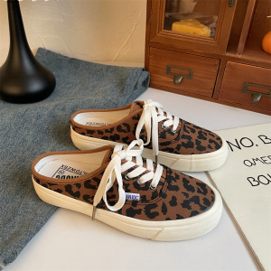 女性用ヒョウ柄ハーフスリップキャンバスシューズ2025新作ワンステップ韓国版多用途ニッチカジュアルロートップスニーカー在庫あり