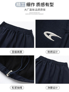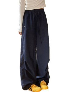 藏青色工装裤女春夏季2025新款宽松直筒休闲速干小个子刺绣阔腿裤