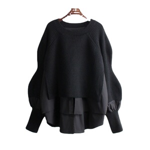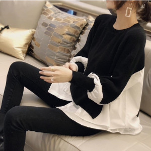クロスボーダーヨーロッパステーション偽ツーピースセーター春と秋の新しい女性のデザインルーズスタイルシャツスプライシングニットトップ