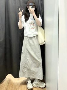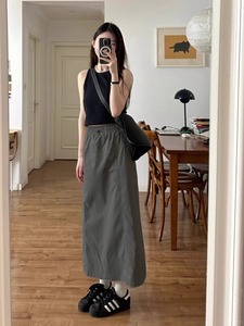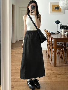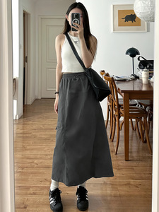 アメリカンニッチレトロワークウェアスカート女性の秋デザインAラインハイウエストミドル丈スポーツスリムスカート