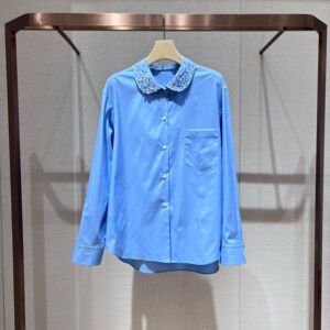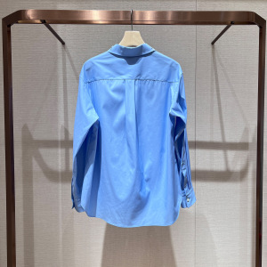 2025年秋季新款蓝色长袖翻领钉珠宽松显瘦气质衬衫上衣女XRJ4C05D