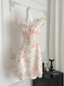 ヨーロッパとアメリカのフレンチスタイルの優しいスタイルのサスペンダースリーブウエスト花柄ドレス女性用2025夏スーパーフェアリー気質初恋