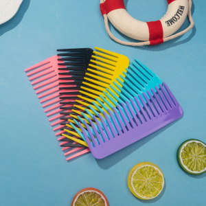 宽齿梳子【可印logo】彩色长方形塑料扁梳女长发顺发不打结美发梳