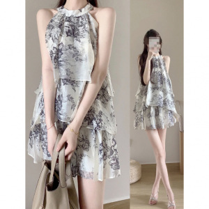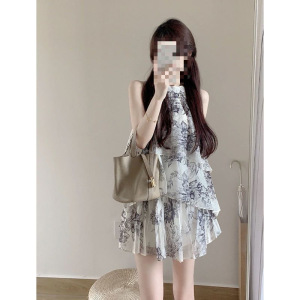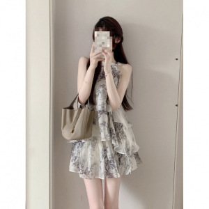 2025年新作夏インクプリントホルターネックノースリーブトップ+スカートツーピースセレブスタイルスーツトレンド