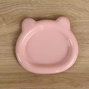 日式ins风小熊盘子罐头冻干高级宠物盘塑料碟子猫咪小狗防黑下巴