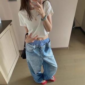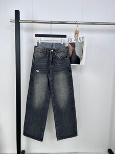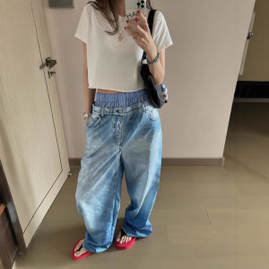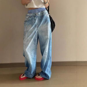高品質25SSトレンド新作ACスプライシングダブルウエストパンツダメージプリントストレートデニムワイドレッグパンツトレンド