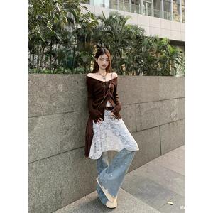 韩国小众ins博主搭配蕾丝半身长裙设计感裙
